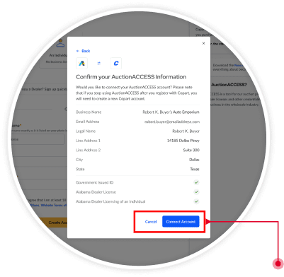 Submit your AuctionACCESS member number (100 Million number) and the last four digits of the photo ID on file, then confirm your account information. Your credentials will be securely sent to Copart after you buy your Premier Membership.*